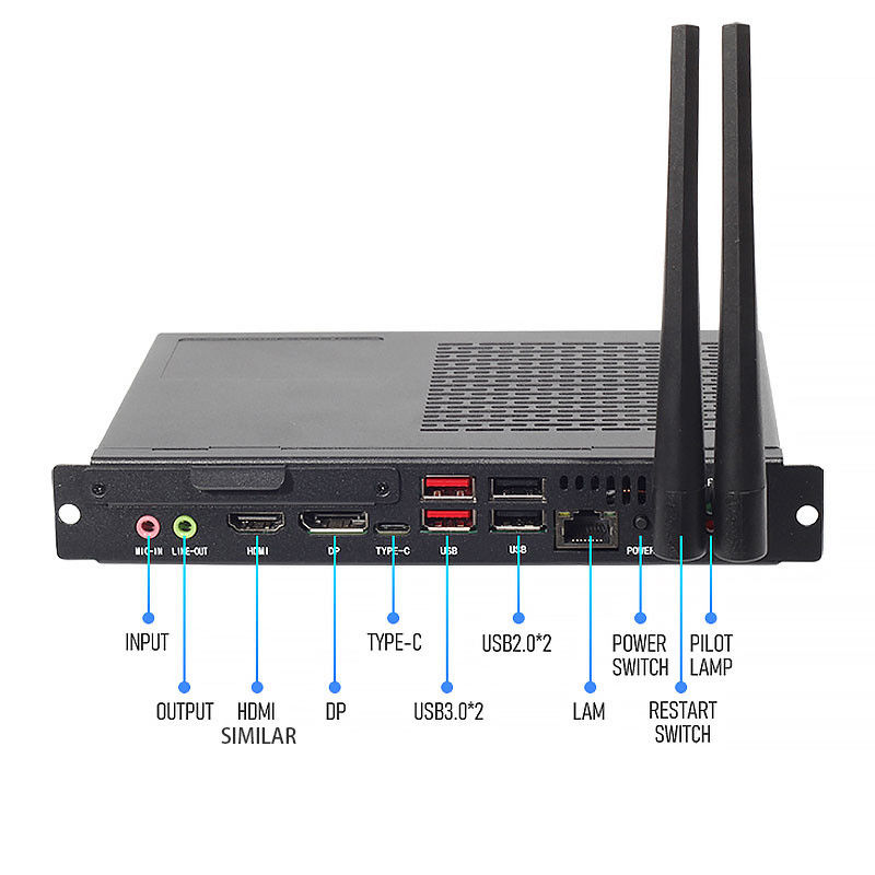 O nosso módulo OPS PC possui I/O: 4 x USB 3.0, 4 x USB 2.0, 2 X COM, 1 X LPT, 2 X Intel I210AT Gigabit Ethernet, 1 X HD-MI, 1 X VGA, e 12 V DC-in fonte de alimentação.permitindo-lhe personalizar o seu dispositivo com facilidade.